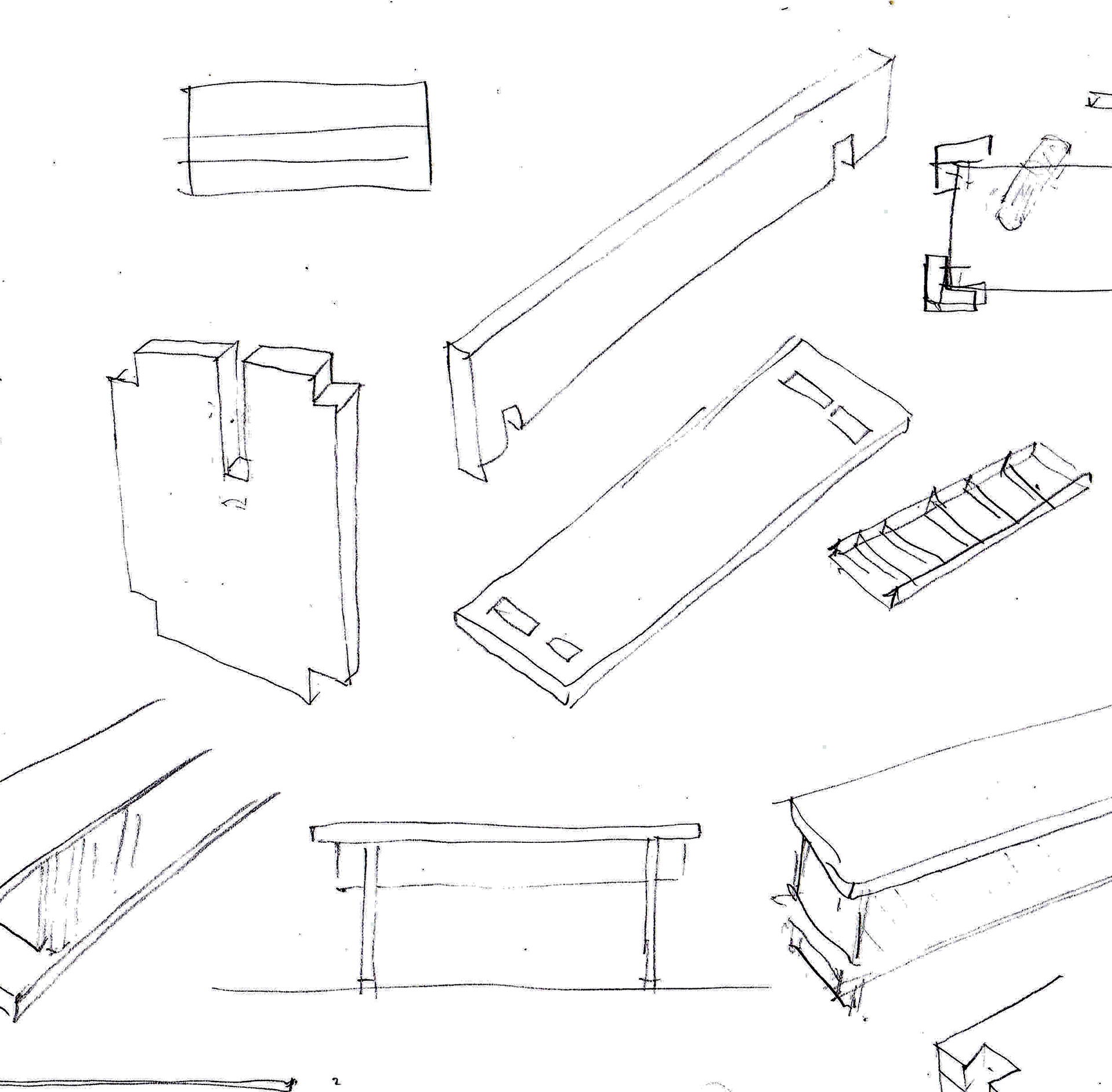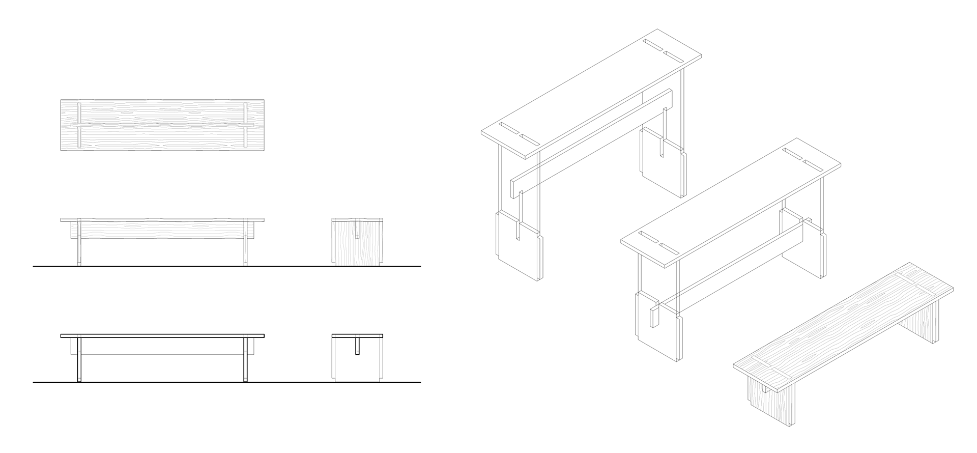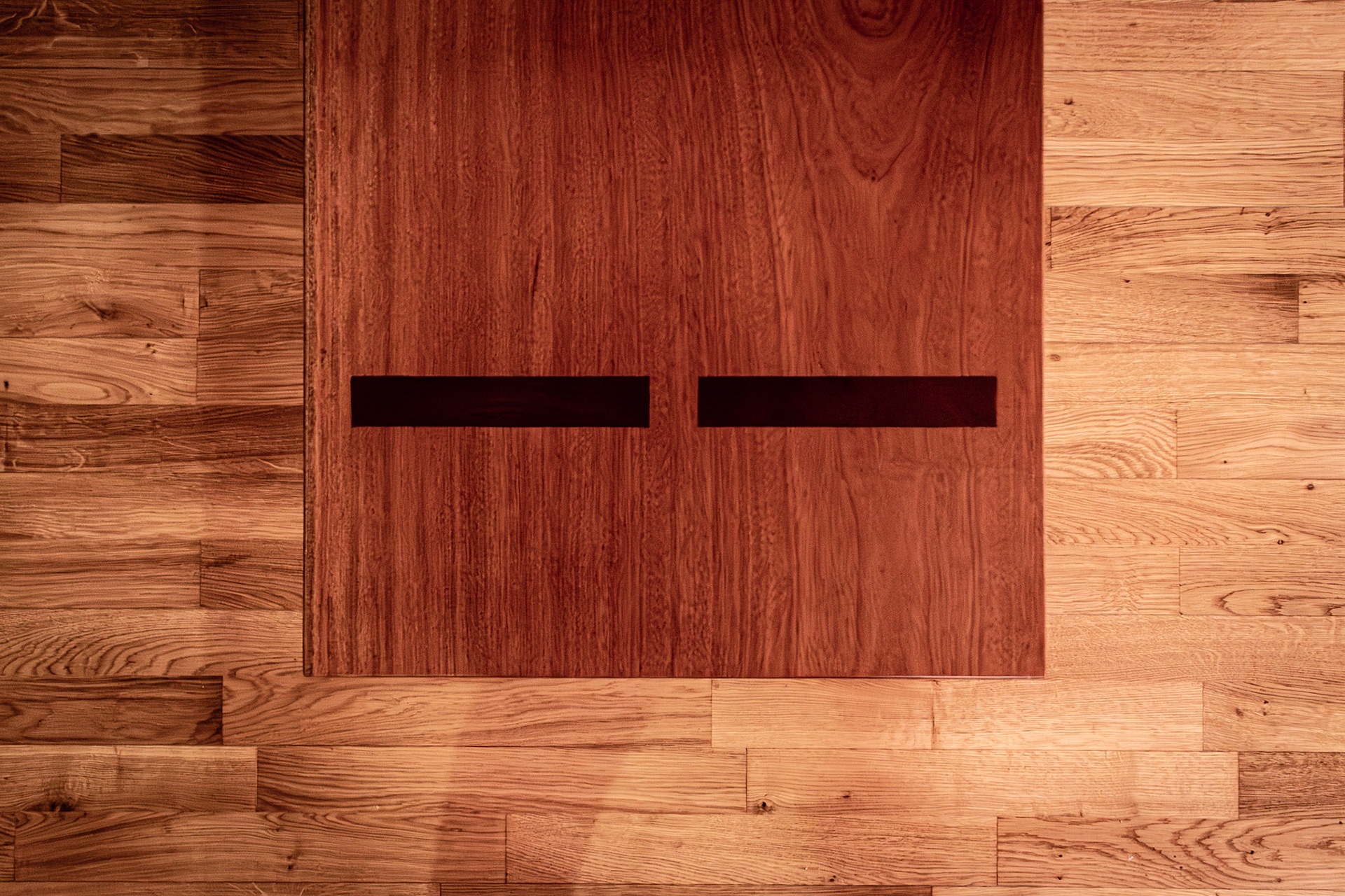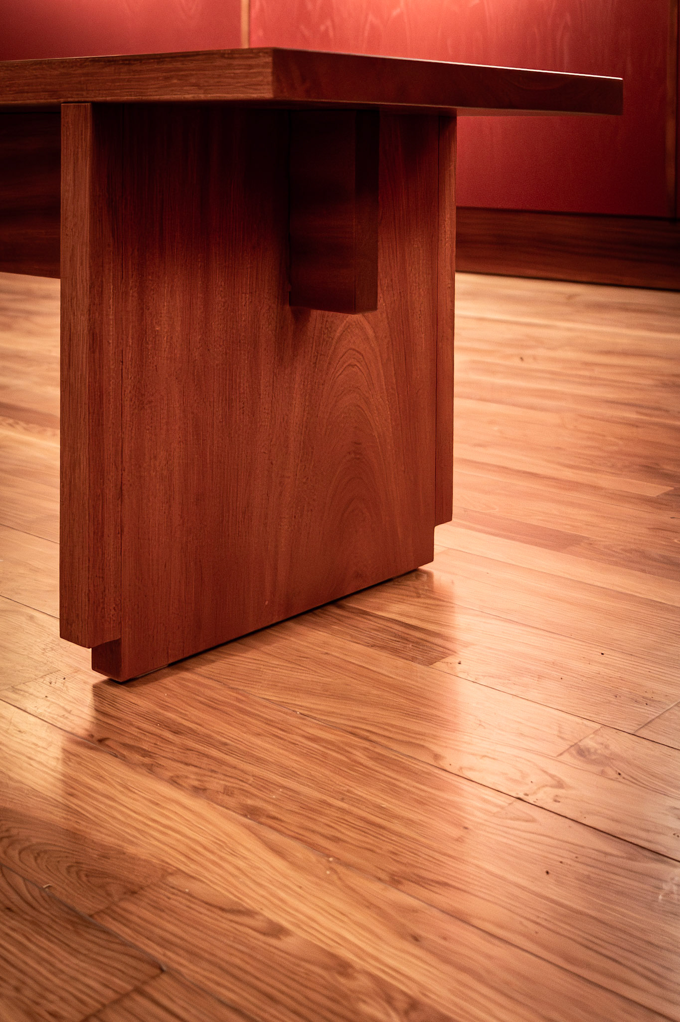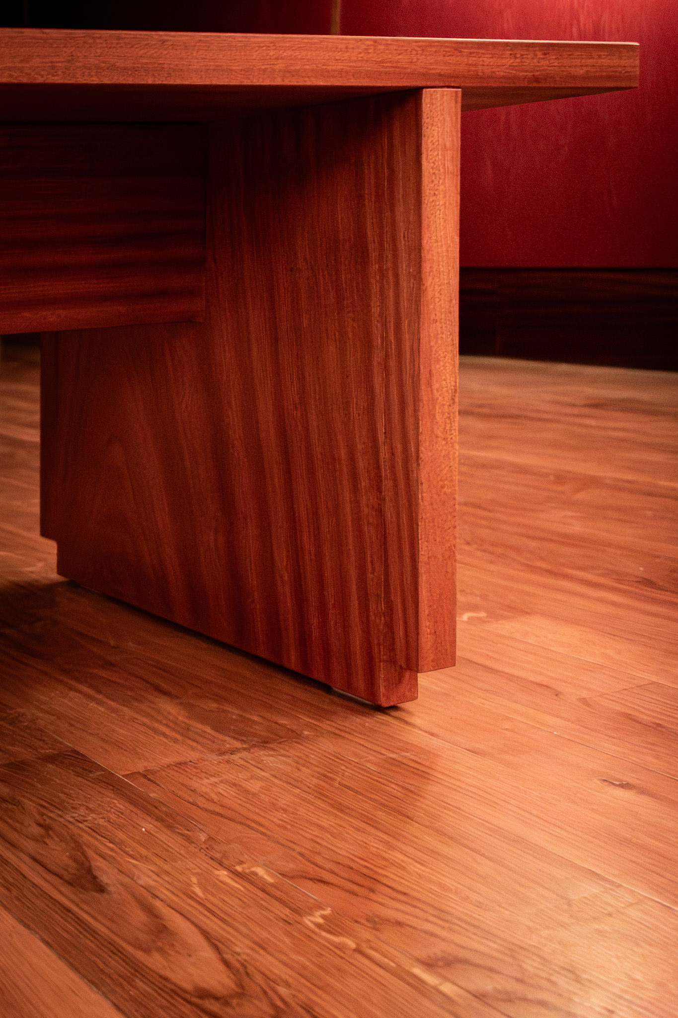 um banco para pontuar dois espaços de uma galeria, em madeira de mogno.