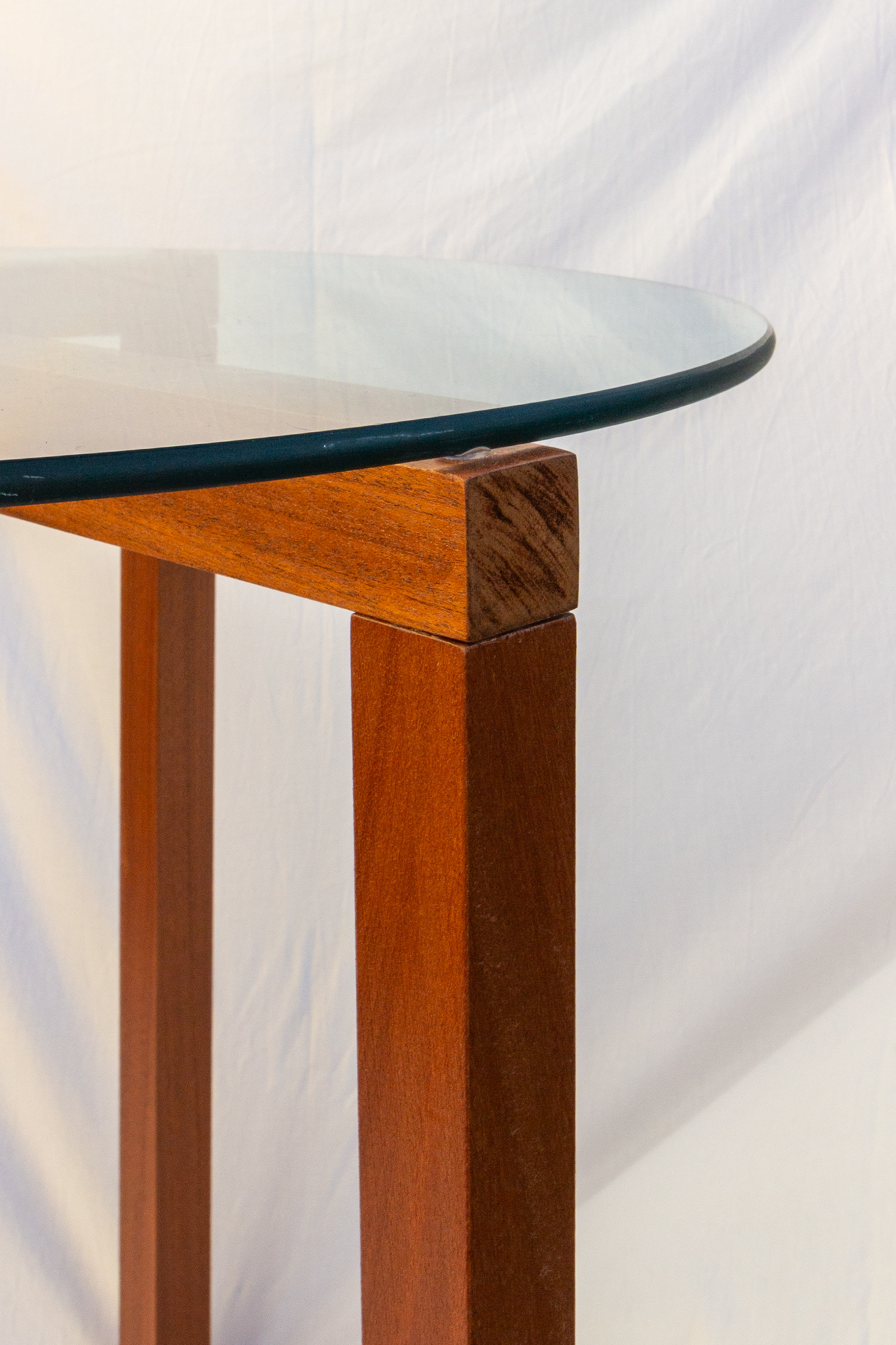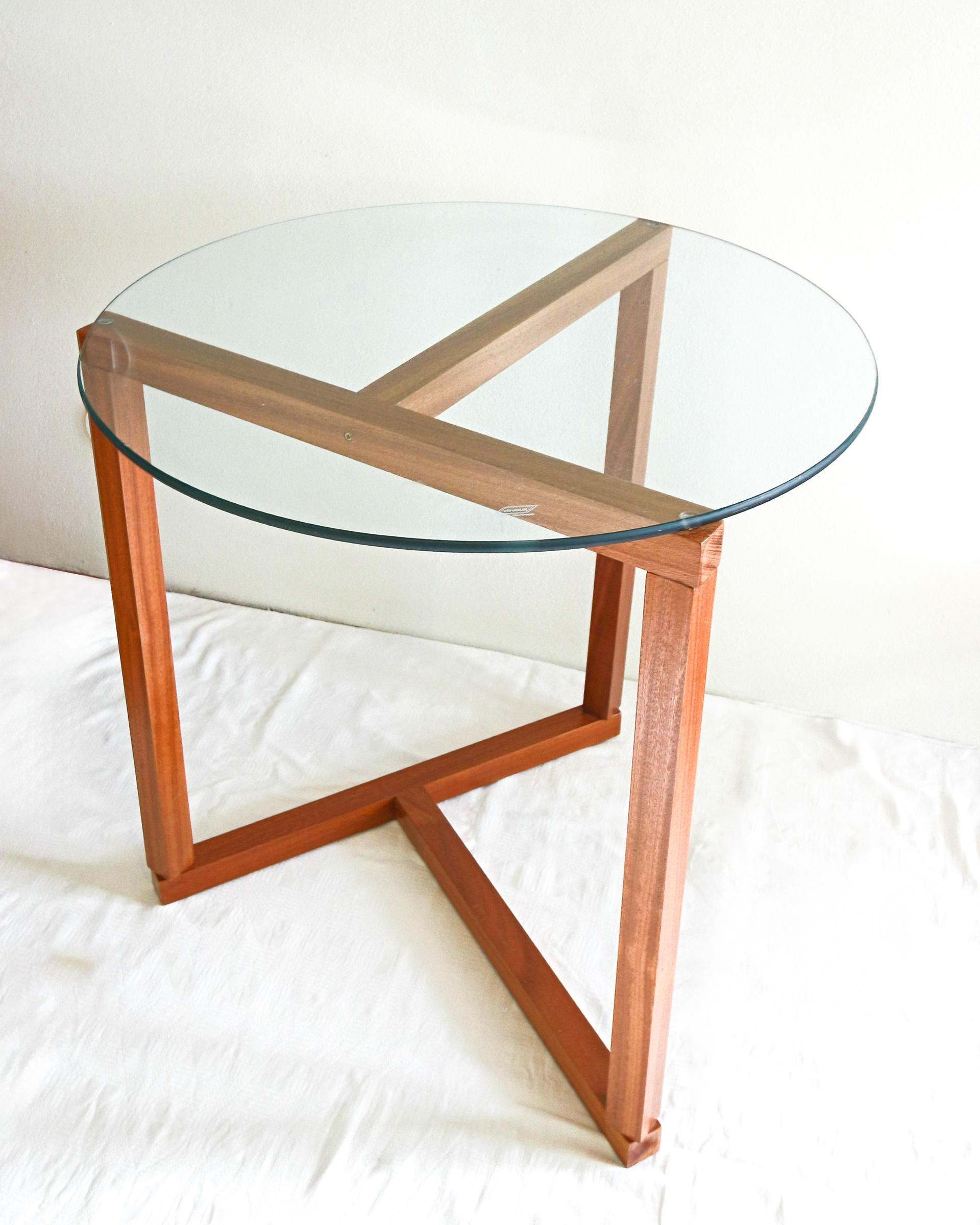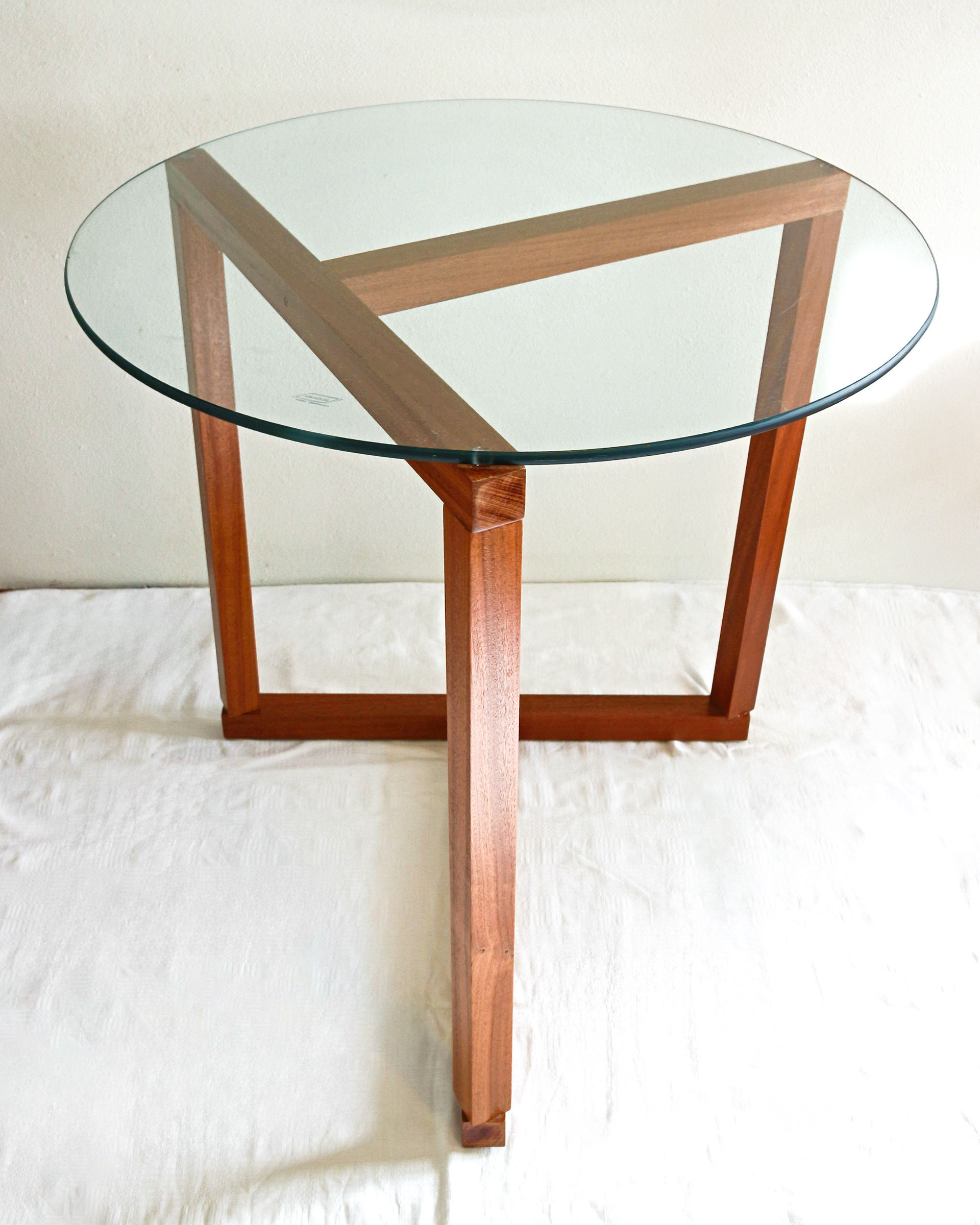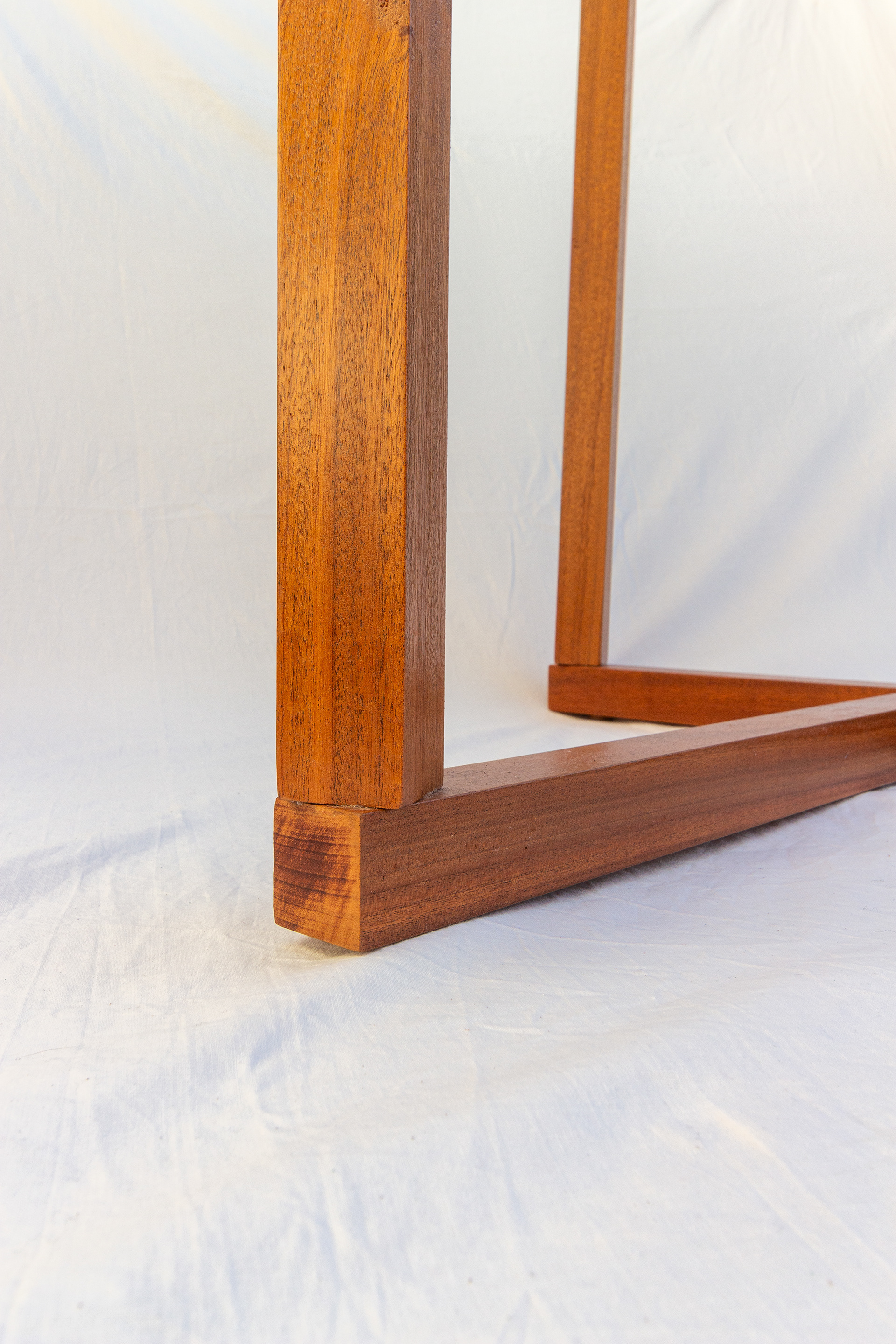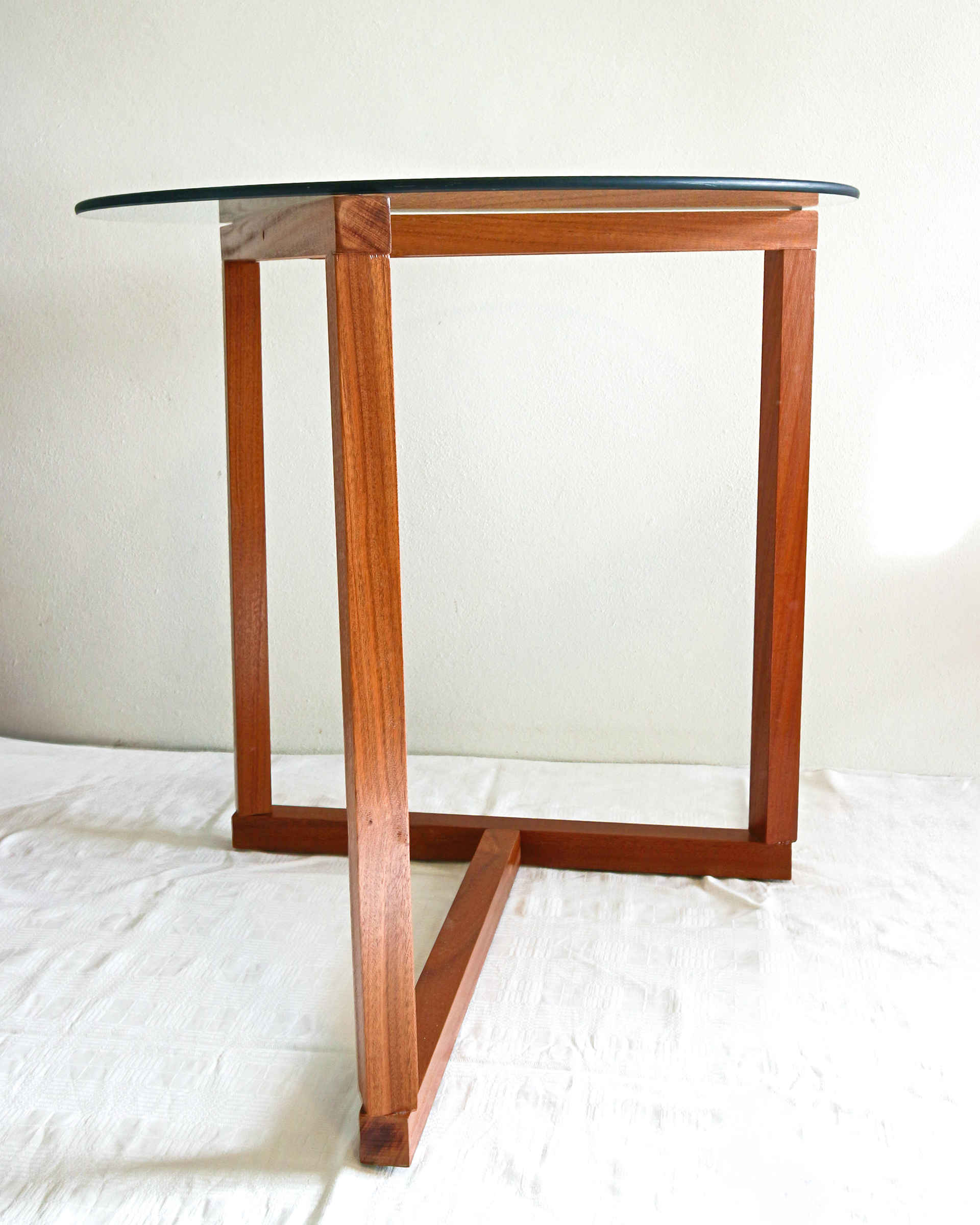 protótipo de uma mesa de apoio e de centro, em madeira de mogno.
